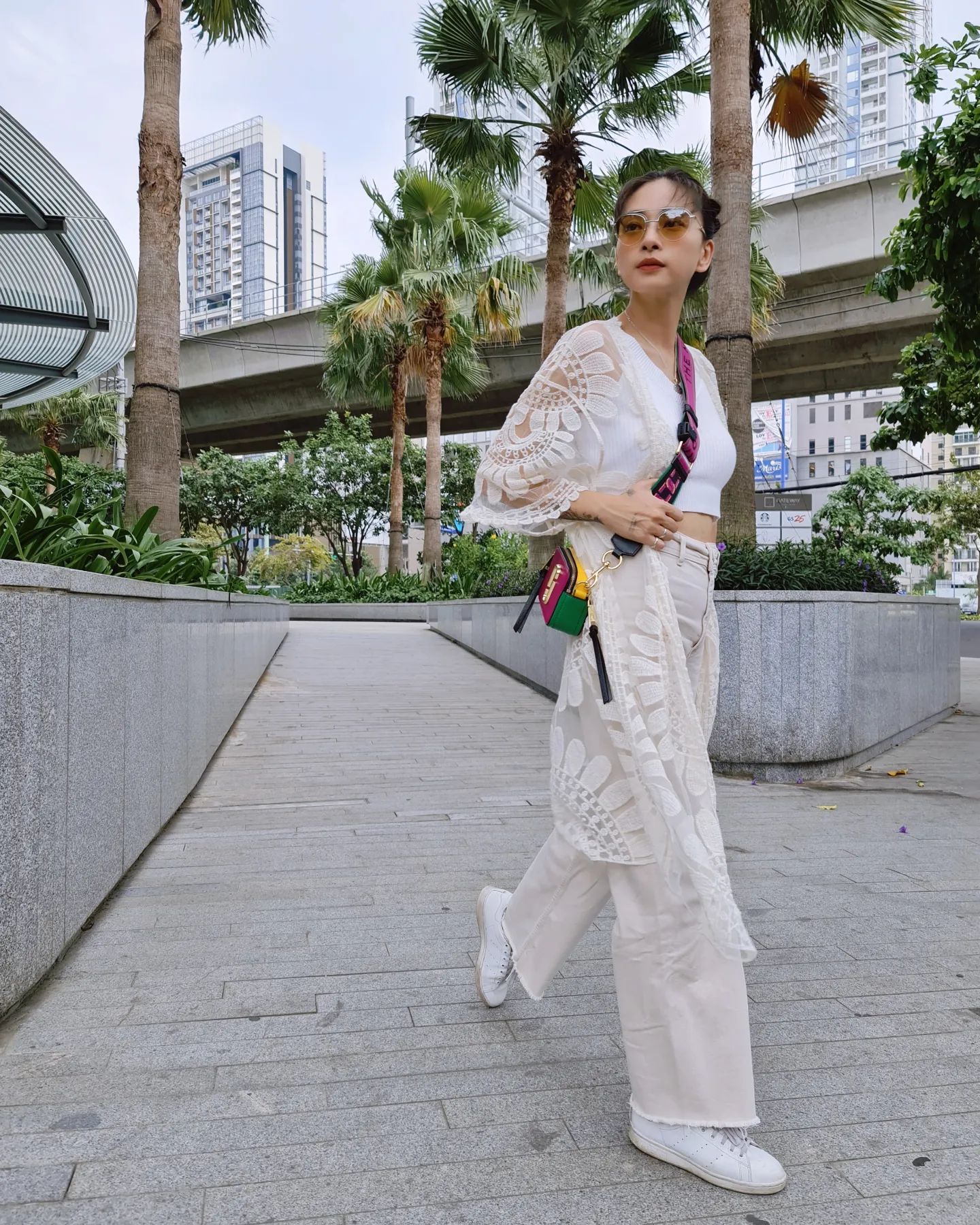 Nữ diễn viên có nhiều cách diện quần trắng sành điệu, chẳng hạn như công thức áo sơ mi + quần jeans trắng + áo khoác dạ thanh lịch, trang nhã hay combo áo crop top + quần trắng ống suông và áo xuyên thấu sành điệu, cá tính. Sang đến mùa xuân và hè, quần trắng lại càng trở thành lựa chọn hoàn hảo vì mang đến cảm giác nhẹ nhõm, mát mẻ.