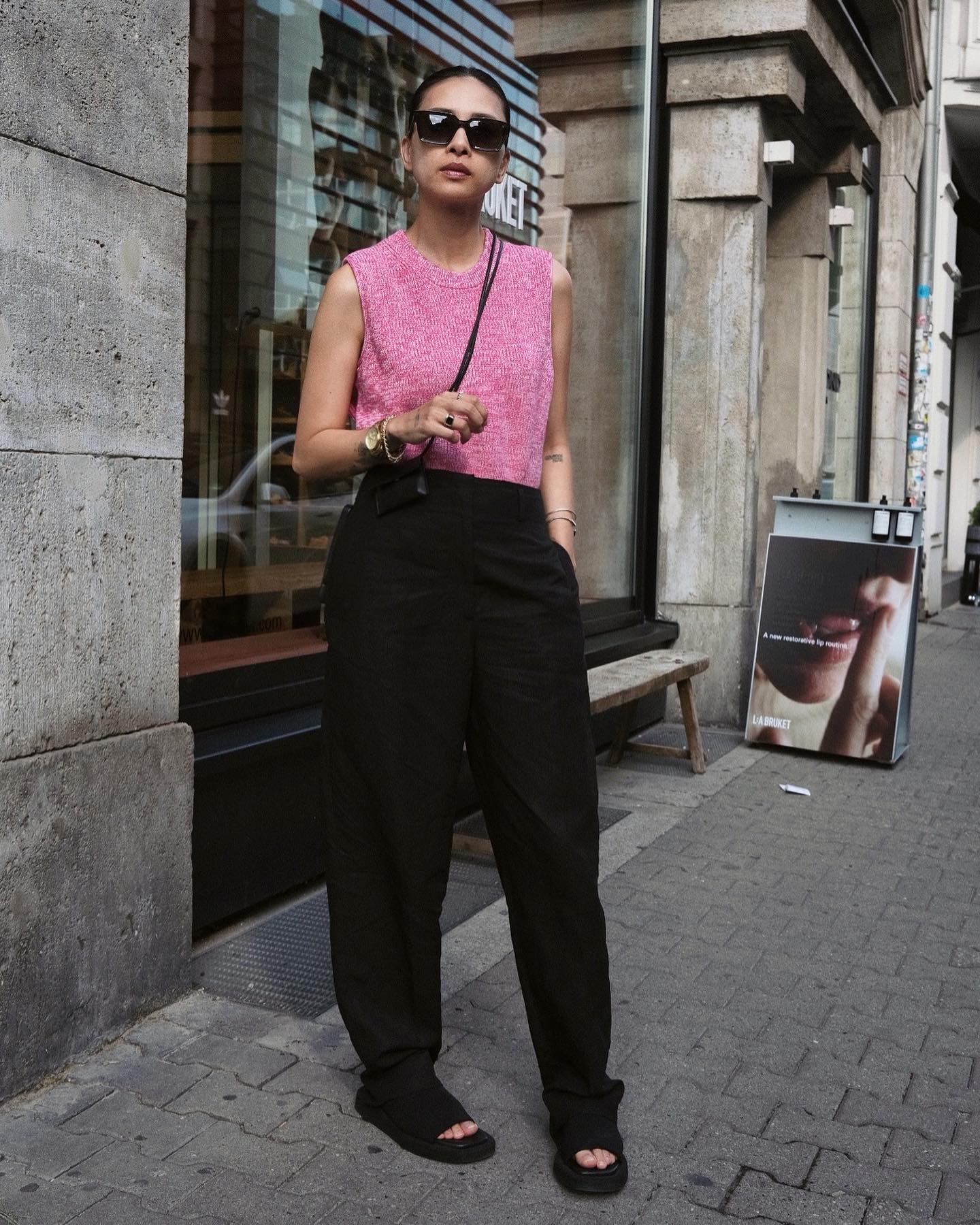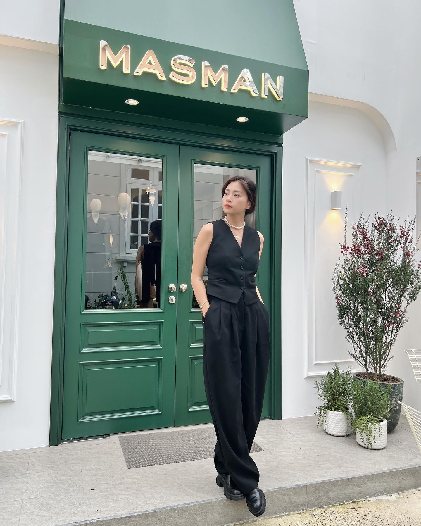Quần đen ống suông phù hợp với mọi vóc dáng, giúp che nhược điểm hiệu quả. Mẫu quần này cũng dễ phối đồ, các nàng có thể kết hợp cùng các mẫu áo có sẵn trong tủ đồ để tạo nên những outfit sành điệu. Về phần Ngô Thanh Vân, cô thường diện quần đen với các mẫu áo nổi bật như áo gile cổ điển, áo len màu hồng để vẻ ngoài trông thật bắt mắt, ấn tượng.