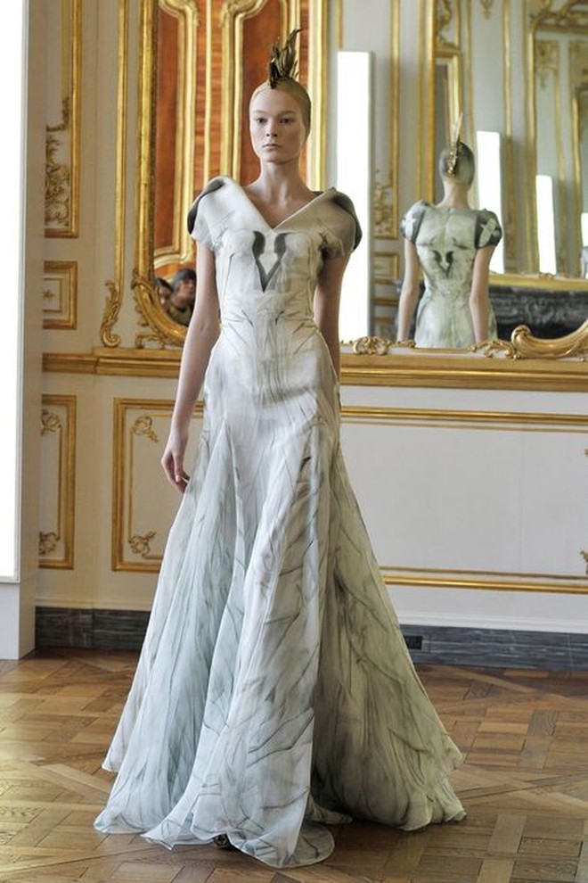 Không khí trầm mặc và trang nghiêm chính là những gì mà người ta cảm nhận được ở show diễn giới thiệu BST Alexander McQueen Thu Đông 2010. Nhà mốt Anh Quốc lúc này đã được tiếp quản bởi Sarah Burton, người trợ lý thân cận 13 năm của NTK "gã trai bất trị".
