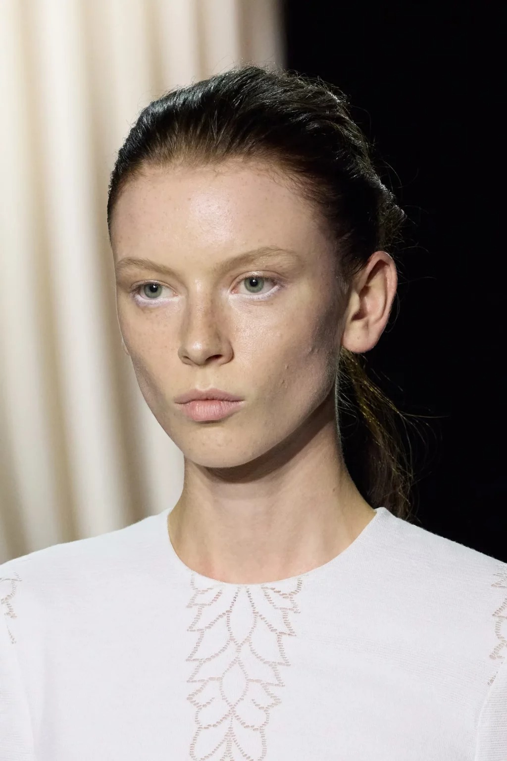 Xu hướng “Trang điểm như không trang điểm” đã được ưa chuộng nhiều năm nay và chưa có dấu hiệu hạ nhiệt trong năm 2024. Hiện tại, thay vì phải dùng các lớp kem che khuyết điểm hoặc kem nên dày cộm để che lấy đi tàn nhang thì phụ nữ ở “thời đại mới” lại tự tin khoe những khuyết điểm đó và xem nó như điểm đặc trưng của bản thân. Kiểu makeup này được bắt gặp ở nhiều sàn diễn, mới nhất có thể thấy sự xuất hiện của chúng tại sàn diễn của Zimmermann trong BST Xuân Hè 2024.