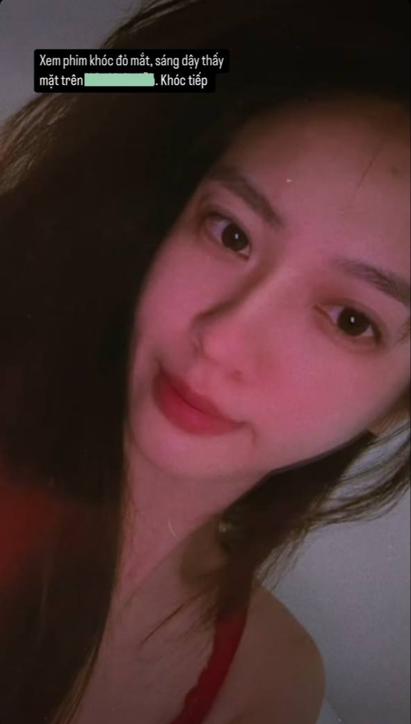 Trước sự bàn tán của mọi người, sáng 24/3, nàng hậu đã đăng tải một bức ảnh selfie lên story cá nhân với diện mạo mộc mạc, ghi chú trạng thái: "Xem phim khóc đỏ mắt, sáng dậy thấy mặt trên mạng. Khóc tiếp".