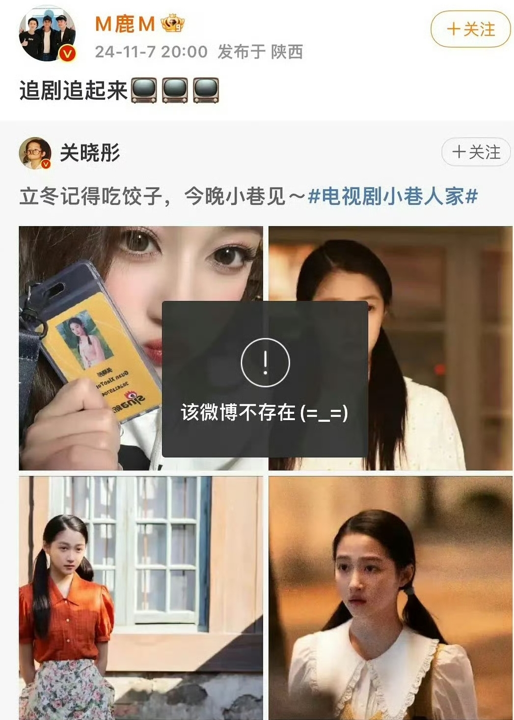 Sina đưa tin tối 7/11, nữ diễn viên Quan Hiểu Đồng đã đăng bài quảng bá cho vai diễn của cô trong phim Tiểu Hạng Nhân Gia (dịch: Gia Đình Trong Ngõ Nhỏ). Sau đó, bạn trai của người đẹp là Lộc Hàm cũng chia sẻ lại bài đăng và kêu gọi người hâm mộ cũng như mọi người cùng xem phim, thưởng thức diễn xuất của bạn gái.