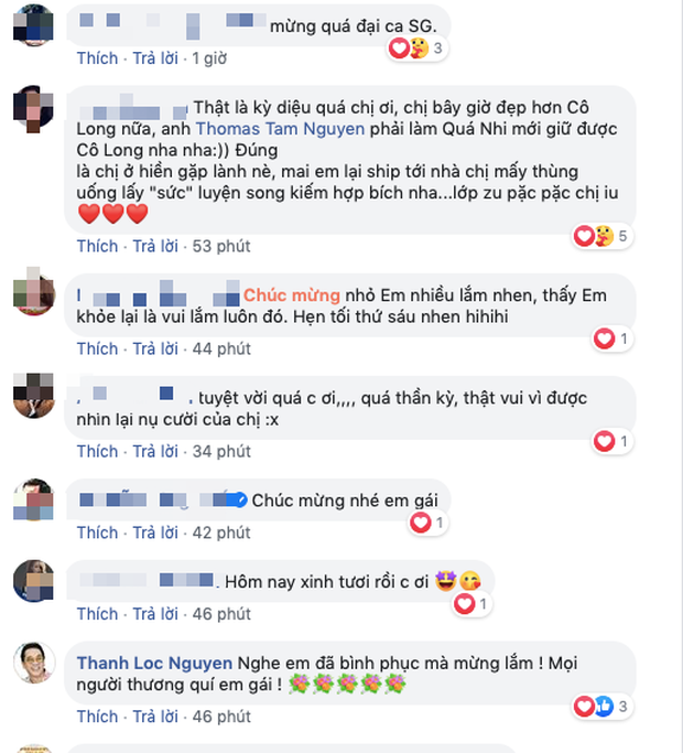 Cách đây ít giờ, Hồng Ngọc tiếp tục khoe ảnh cận mặt, cho biết đã hồi phục hoàn toàn và sẵn sàng trở lại với công việc. Cô viết trên trang cá nhân: "Sức khoẻ luôn là điều quan trọng nhất ngay lúc này, trải qua rồi mình mới nhận ra đời này không gì quý bằng bình yên và khỏe mạnh. May mắn là Ngọc được người thương, gia đình, bạn bè và khán giả quan tâm, hết lòng yêu quý. Nguồn năng lượng tích cực từ yêu thương đó đã giúp cho Ngọc mau chóng phục hồi".