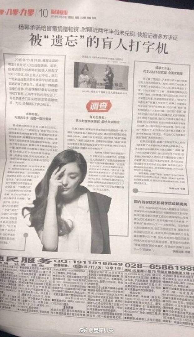 Dương Mịch quỵt tiền từ thiện của trẻ em khuyết tật