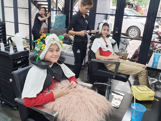 Bà mẹ chăm chút cho các con tỉ mỉ, nhất là khoản trang phục, mỗi khi xuất hiện đều chỉn chu, đồng điệu.