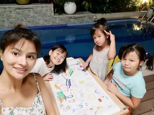 Cựu siêu mẫu chia sẻ, hiện tại 4 đứa con của cô đều yêu mến nhau và rất quý mến mẹ. Cô ví "Các con là bốn viên ngọc quý của tôi và ông xã".