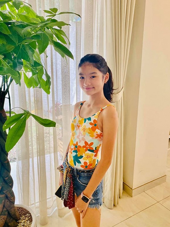 Trong hình, bé Bảo Tiên khoe gương mặt xinh xắn như bản sao hoàn hảo của ông bố nổi tiếng. Nhưng điều khiến dân tình phát sốt lại chính là đôi chân dài miên man thẳng tắp như siêu mẫu của bé Bảo Tiên. Nhìn Bảo Tiên không ai nghĩ cô bé mới chỉ bước sang tuổi 12. con gái Trương Ngọc Ánh không chỉ sở hữu ngoại hình vượt trội mà còn học rất giỏi khi thông thạo tiếng Anh cùng nhiều tài lẻ khác.