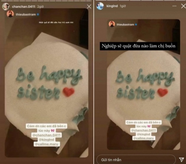Khoảng đầu năm 2021, cư dân mạng xôn xao trước loạt story đồng loạt của hội chị em thân thiết với ca sĩ Thiều Bảo Trâm. Trong một buổi tụ họp, cô cắt bánh kem với dòng chữ "Be Happy Sister" (Vui vẻ nhé chị gái) cùng lời nhắn cảm động: “Cảm ơn các em đã bên chị lúc này”.