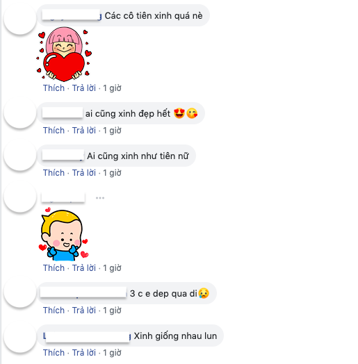Tuy nhiên, ai nấy cũng phải cảm thán rằng cả 3 chị em xinh đẹp, trong trẻo như 3 nàng tiên. Cư dân mạng thích thú bình luận: "Chời ơi xinh như tiên á", "Nhà có 3 nàng tiên", "Xinh quá ba chị ơi", "Ai cũng xinh như tiên nữ"...