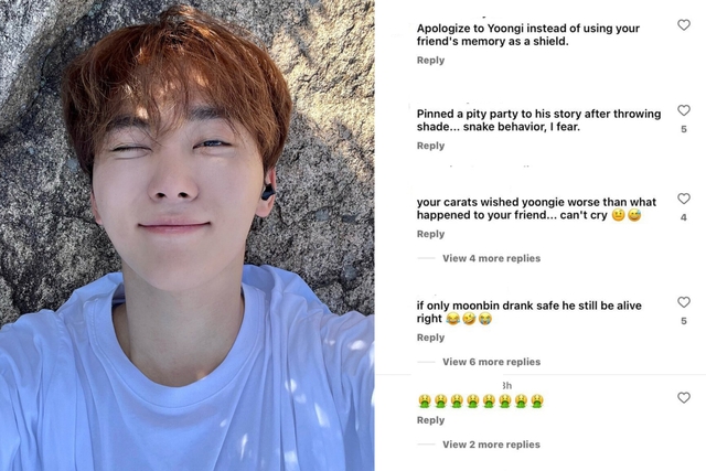 Ngày 11/8, giọng ca chính Boo Seungkwan của SEVENTEEN đăng bài quảng bá cho một hãng bia. Dưới bình luận, nam idol đính kèm dòng cảnh báo tác hại đồ uống có cồn. Đây là luật tại Hàn Quốc, nhưng fandom BTS đã nguyền rủa Seungkwan vì lý do nghi ngờ nam idol ám chỉ đến sự vụ của Suga. Đỉnh điểm, fan BTS kêu gọi bình luận tấn công Instagram Seungkwan, yêu cầu nam idol “đi theo" thần tượng quá cố Moonbin (bạn thân Seungkwan).
