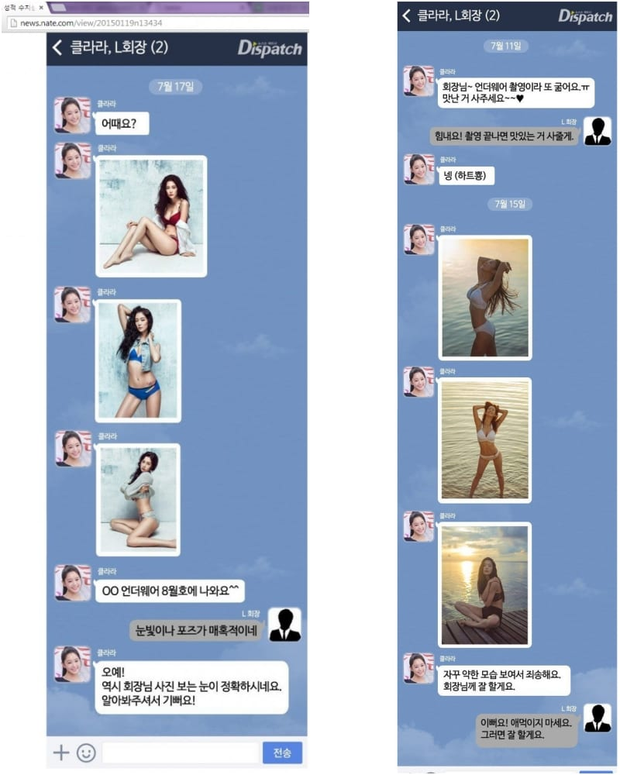 Đến năm 2015, người đẹp ngực khủng đã gặp scandal lớn nhất trong đời. Thời điểm đó, cả showbiz chấn động trước thông tin Clara tố cáo công ty quản lý Polaris và CEO công ty vì có hành vi không đúng mực, liên tục gửi tin nhắn quấy rối tình dục cô. Tuy nhiên, chỉ ít hôm sau đó, sự thật đã được làm rõ. Đoạn tin nhắn được tung ra đã chứng minh chính Clara mới là người chủ động tán tỉnh CEO đã ngoài 60 tuổi. Không những vậy, cô còn gửi vô số hình ảnh "mát mẻ" của bản thân cho CEO. Công chúng Hàn Quốc vô cùng tức giận, gọi Clara là kẻ "vừa ăn cắp vừa la làng". Không những vậy, cô còn liên tiếp bị vạch trần những lời nói dối trên show truyền hình.