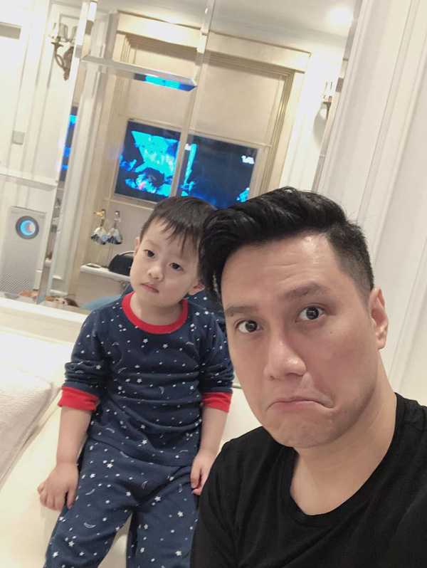 Việt Anh và con trai ở nhà trong mùa dịch nCoV.