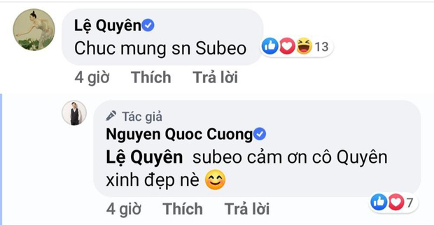 Mới đây, Lệ Quyên bất ngờ có động thái tương tác liên quan tới Hồ Ngọc Hà khiến nhiều người ngỡ rằng cả hai đã “nối lại tình xưa”. Cụ thể, “nữ hoàng bolero đã comment chúc mừng sinh nhật Subeo. Tuy nhiên, đây chỉ là bình luận trên trang cá nhân của Cường Đô la chứ không phải trang cá nhân của Hồ Ngọc Hà.