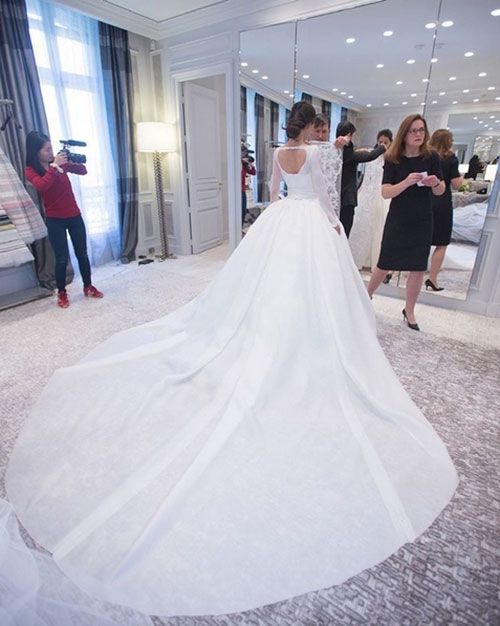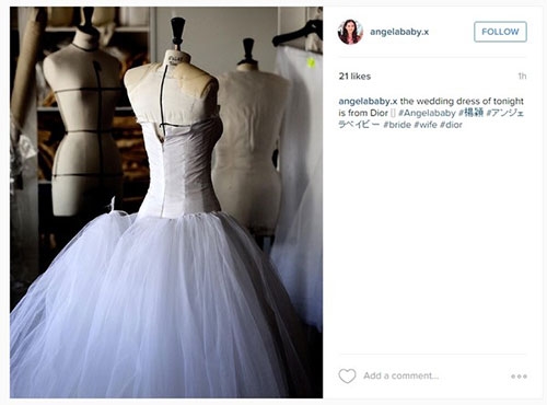 | Được biết, chiếc váy cưới chính mà Angela Baby diện trong lễ cưới là thiết kế của Dior. Có nhiều khả năng đây là mẫu váy mà nhà mốt đình đám thực hiện riêng cho Angela Baby. |