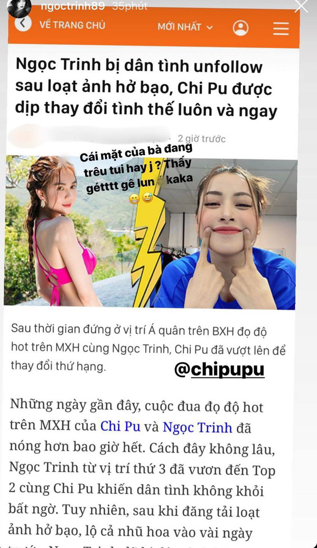 Thân thiết chưa bao lâu, Chi Pu và Ngọc Trinh cùng nhau bước vào đường đua tranh độ hot trên MXH. Thái độ của "Nữ hoàng nội y" khi bị bạn thân vượt mặt gây chú ý!