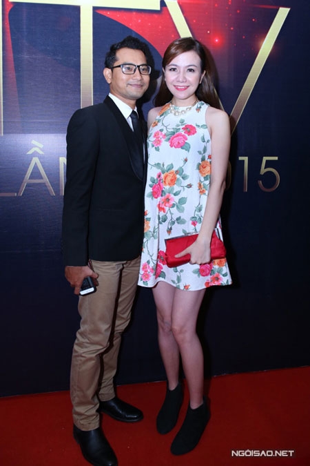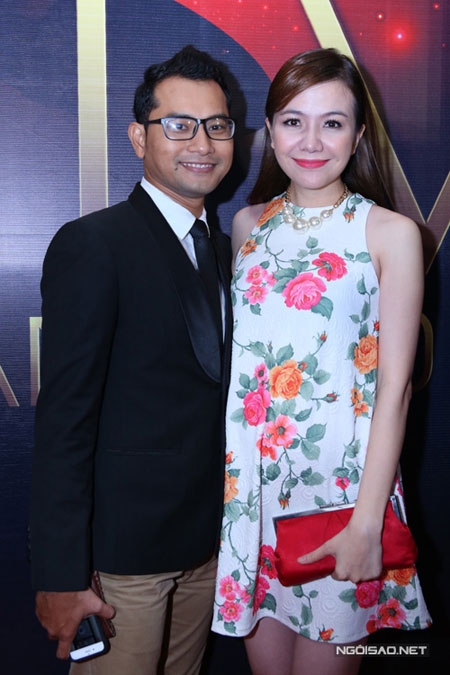 Á hậu trông khá gọn gàng khi cùng chồng đi dự HTV Awards, tối 4/4.