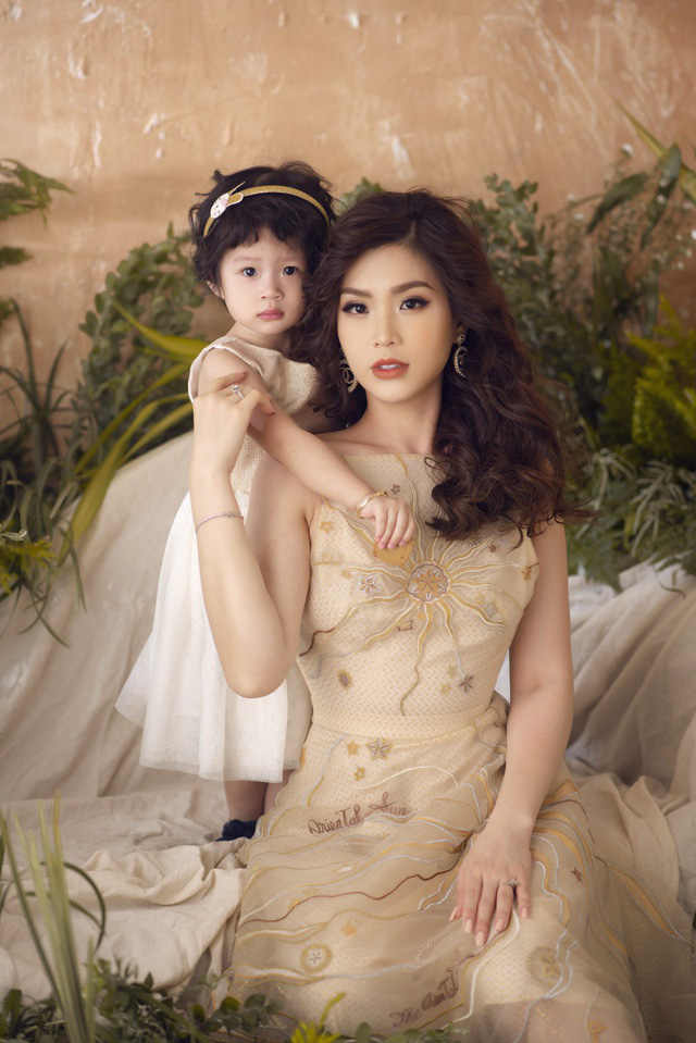 Khi không có vú nuôi, tôi cũng làm hết mọi việc trong gia đình. Tôi trở thành người mẹ vừa nhu vừa cương. Tôi rèn con vào nếp từ cách cư xử, cách ăn nói, tính độc lập. Tôi thương con thì thương hết lòng, hay đùa giỡn cùng bé nhưng khi mẹ nghiêm, bé biết mình đã làm sai nên cũng sợ mẹ", người đẹp sinh năm 1991 tâm sự.