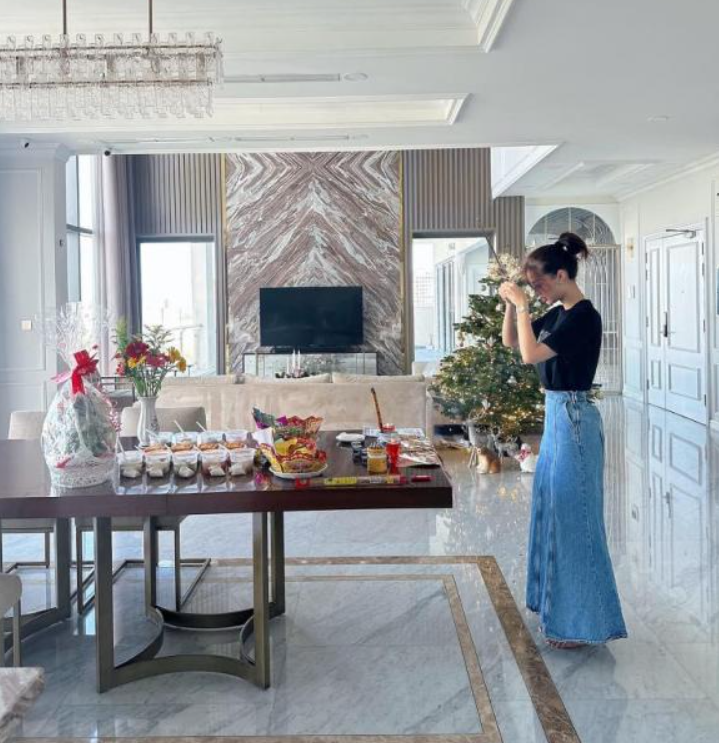 Trong dịp Giáng sinh, Kiều Loan tự tay trang trí cây thông tạo không gian lung linh, sang chảnh. Đặc biệt, nhà của nàng hậu còn có bể bơi riêng, nằm cạnh khu vực phòng khách. Dù nàng hậu không tiết lộ giá trị căn nhà này nhưng nhìn qua nội thất và view, cư dân mạng đoán nó có giá trị đắt đỏ.