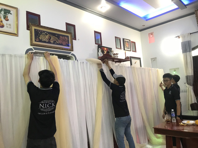 Không khí tại nhà của nàng Á hậu cũng trở nên náo nhiệt hơn vào những ngày này. Khác với thành thị, đám cưới của người dân miền Tây đa số được tổ chức và dựng rạp tại gia. Thông qua những hình ảnh chuẩn bị, có thể thấy Thuý An đặt khá nhiều tấm tư cho khâu trang trí. Đặc biệt là cổng hoa được dựng lên từ nia tre và rất nhiều loài hoa quen thuộc như hoa sen, hoa thiên điểu, hoa cẩm tú cầu, hoa hồng...