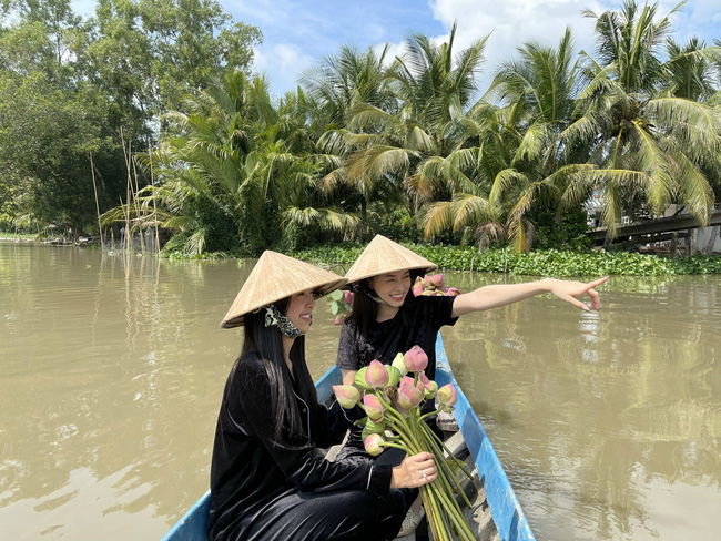 08/01/2021 03:00Á hậu Phương Nga chèo xuồng đi chợ, cùng Thúy An trang trí đám cưới đầy hoa tại quê nhà