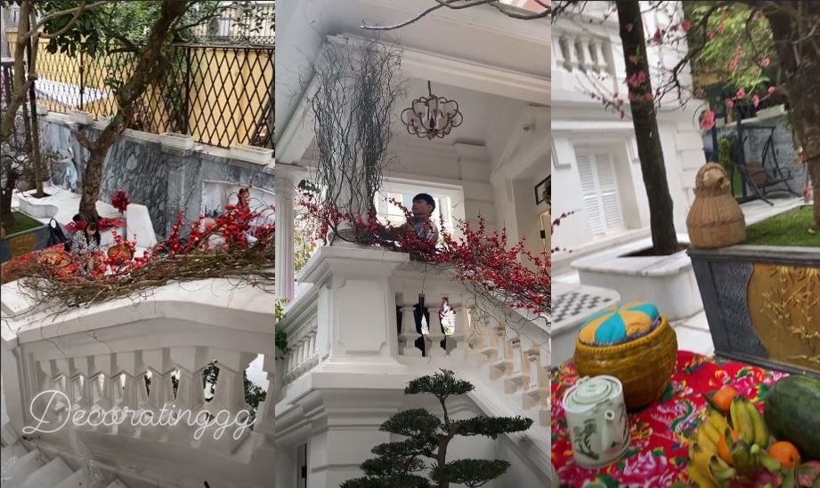 Có thể thấy, căn nhà của vợ chồng Á hậu 1 - Hoa hậu Việt Nam 2016 được thiết kế với tông màu trắng chủ đạo, pha lẫn nét truyền thống và hiện đại. Biệt thự có một khoảng sân nhỏ được bao quanh bởi tường và rào. Trong sân, Thanh Tú còn trồng thêm cây và bài trí thêm xích đu. Ngoài ra, cô còn đặt thêm một cây đào lớn cùng các vật dụng truyền thống như ấm nước, hoa quả, ... để đón Tết.
