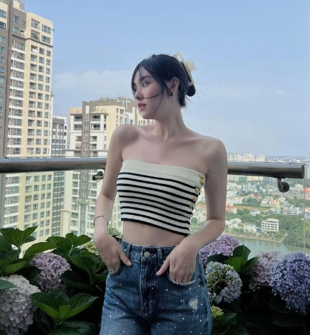 Dù đã là mẹ một con nhưng có thể thấy nhan sắc và vóc dáng của Tường San không hề có bất kỳ sự thay đổi nào so với thời còn con gái. Cô vẫn khoe được nét trẻ trung, năng động của mình, đặc biệt là cơ thể thon gọn.