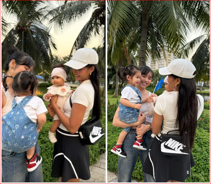 Tâm điểm chú ý của buổi gặp là màn làm quen cực đáng yêu giữa bé Ayla và bé Harley, con gái H’Hen Niê. Bé Harley tỏ ra dạn dĩ khi chủ động chìa tay chào chị Ayla, trong khi con gái Vũ Hoàng My cười tươi không rời, khiến các bà mẹ và người hâm mộ không khỏi “tan chảy”.