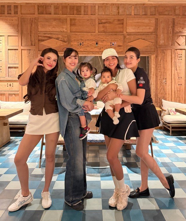 Hội chị em Hoàn vũ từng là những đại diện Việt Nam tại Miss Universe qua nhiều năm, gắn bó từ công việc đến đời sống. Dù ít có dịp gặp mặt trực tiếp, họ vẫn giữ liên lạc và tương tác thân thiết. Vũ Hoàng My cũng không giấu được sự thích thú khi nhận ra cuộc hội ngộ năm nào giờ đã khác xưa, từ chuyện trò rôm rả xuyên đêm nay chuyển sang vừa ăn vừa trông con và phải về sớm để các bé ngủ đúng giờ.