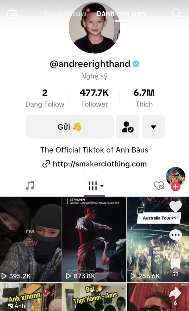Cư dân mạng mới đây xôn xao soi ra được chi tiết nam rapper sinh năm 1987 đã nhập hội "chỉ follow mình em". Cụ thể ở tài khoản TikTok của mình, Andree đã nhấn theo dõi 2 tài khoản, trong đó 1 tài khoản cá nhân và 1 tài khoản shop thời trang. Tuy nhiên, tài khoản cá nhân này không phải của ca sĩ Phương Ly mà là một cô gái khá nổi tiếng trên TikTok có hơn 800.000 lượt theo dõi. Hiện tại nam rapper Andree đã huỷ theo dõi cô gái này.