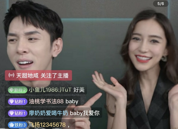 Weibo xứ Trung đang xôn xao bàn tán về những hình ảnh trên sóng livestream mới nhất của Angela Baby. Xuất hiện cùng blogger đình đám Lý Giai Kỳ, bà xã Huỳnh Hiểu Minh diện đầm đen quyến rũ, mái tóc xoăn nhẹ làm nổi bật gương mặt nữ thần. Tuy nhiên, khi soi kỹ nhan sắc của Baby, nhiều netizen lại có những bình luận trái chiều.