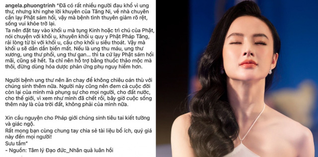 Mới đây, trên trang Instagram cá nhân, Angela Phương Trinh gây chú ý khi chia sẻ bài viết có nội dung chữa ung thư bằng cách niệm Phật.