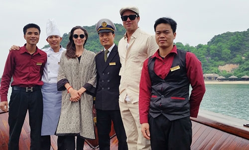 Chiều ngày 21/12, thông tin Brad Pitt và Angelina Jolie đang có mặt tại Việt Nam xuất hiện trên mạng. Cặp sao Hollywood khi đó vừa kết thúc kỳ nghỉ ngắn ngủi trên Vịnh Hạ Long. Angelina Jolie và Brad Pitt đi du thuyền Valentine Premium để tận hưởng cảnh đẹp Việt Nam trong hai ngày 20 và 21/12. |