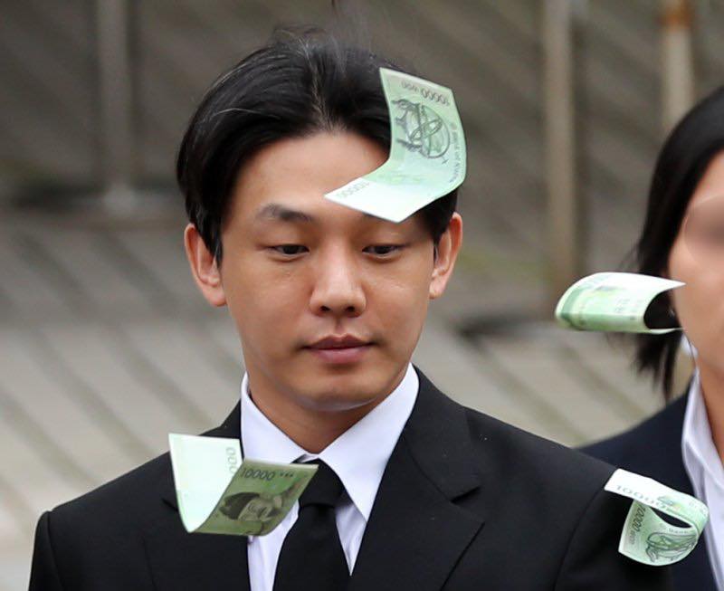 Theo đó, một người dân đã thể hiện sự phẫn nộ bằng cách vứt xấp tiền 10.000 won lẫn vài tờ 1.000 won vào mặt Yoo Ah In, đồng thời hét to: "Vào tù mà tiêu hết số tiền đó đi".