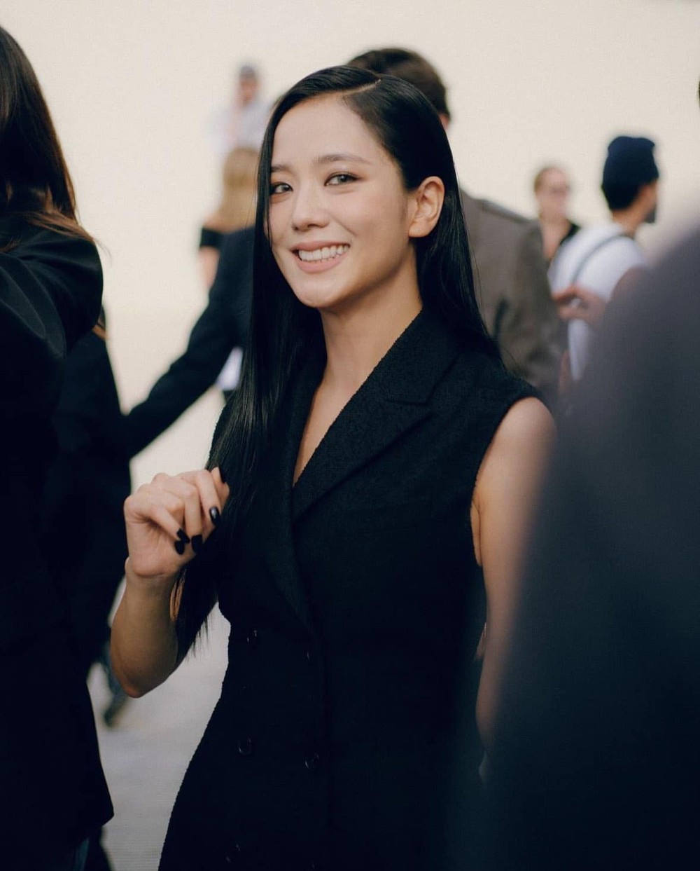 Ngày 26/9, nhiều ngôi sao quốc tế tham dự sự kiện Tuần lễ thời trang Paris của Dior. Jisoo (BlackPink) tiếp tục là tâm điểm chú ý của đám đông. Nữ thần tượng xuất hiện với diện mạo mới, đánh mắt khói thay vì trang điểm nhẹ nhàng như thường lệ.