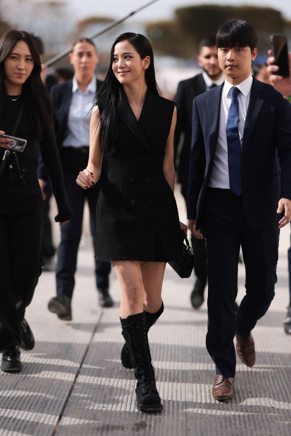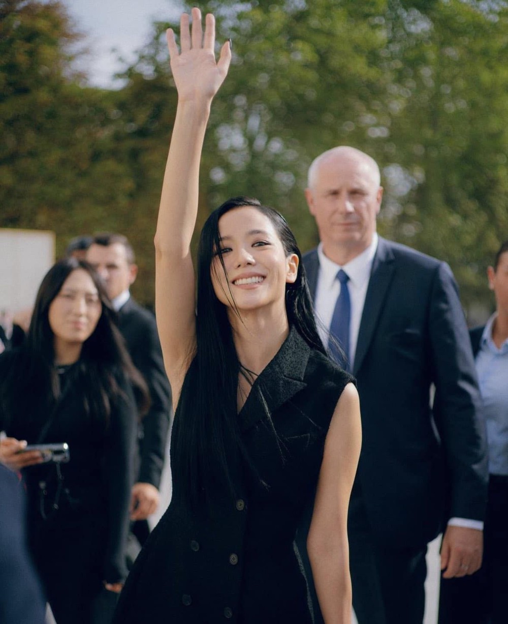 Mỹ nhân BlackPink luôn nhận được đãi ngộ tốt nhất từ hãng. Jisoo được hộ tống bởi lực lượng an ninh và được chào đón bởi Olivier Bialobos - giám đốc truyền thông và hình ảnh của Dior Couture cùng giám đốc PR Mathilde Favier.