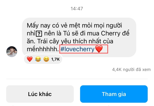Dù không trực tiếp lên tiếng làm rõ nghi vấn rạn nứt nhưng Anh Tú lại "thả thính" liên quan đến Diệu Nhi. Những người theo dõi "thánh nhây" từ trước đến nay đều biết nữ diễn viên thường xuyên viết ký hiệu trái cherry lên trang cá nhân.
