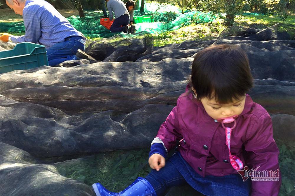 Trên tổng 10.000 m2 diện tích đất, vườn ô-liu chiếm khoảng 2.000 m2. Tháng 10 - 11 hằng năm, gia đình Ngô Mỹ Uyên lại đến đây thu hoạch ô-liu, xay lấy dầu dùng cho cả năm.