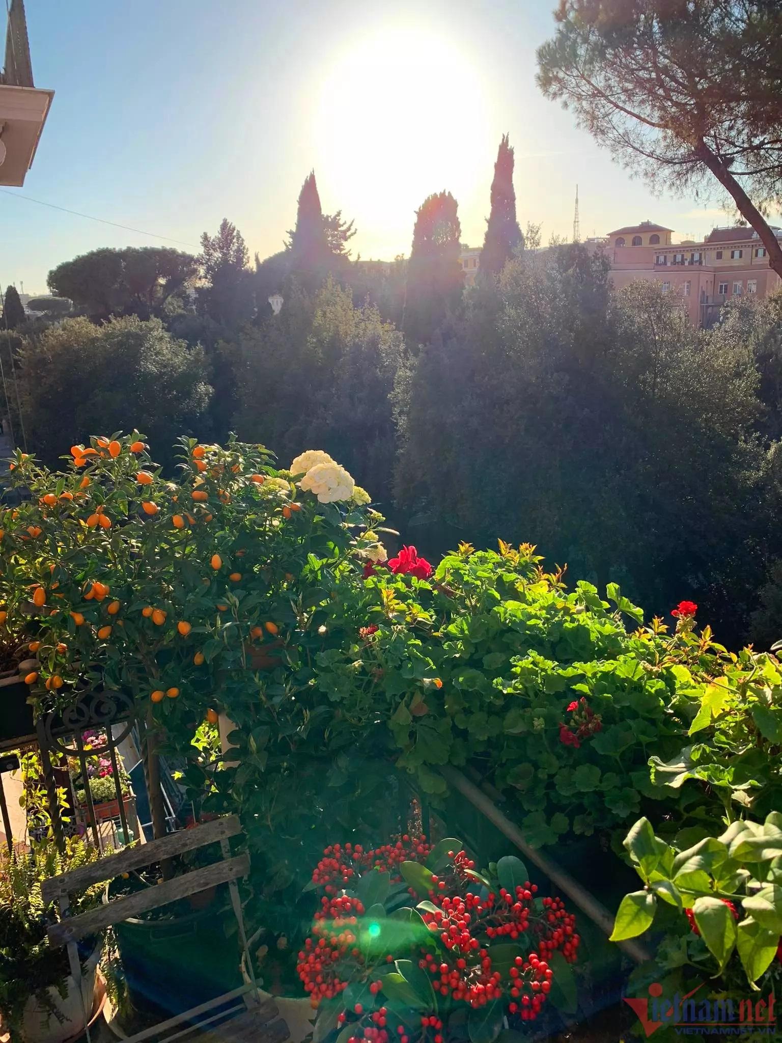 Căn hộ có hai mảng xanh ở ban công và cây xanh trong nhà. Ngô Mỹ Uyên và người làm vườn chọn trồng các loại hoa, kiểng, chanh vàng, thanh trà,… Người đẹp tự tay chăm sóc và thay hoa theo 4 mùa trong năm.