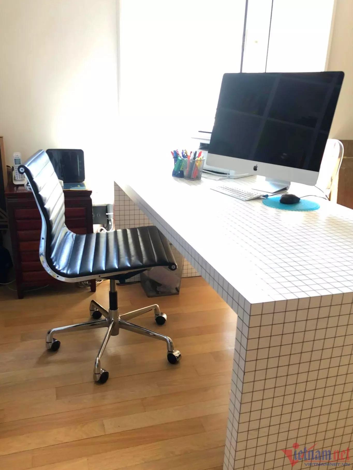 Dù Ngô Mỹ Uyên rất hiếm khi về đây, đồ đạc của nữ chủ nhân căn biệt thự vẫn giữ như nguyên vẹn, đặc biệt là phòng đọc sách và phòng thời trang. Chị kể đây là hai không gian "đắt giá" nhất, thể hiện đúng bản ngã của chị thời còn hoạt động showbiz.