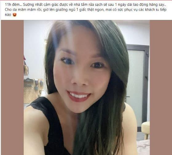 Mới đây, trên facebook cá nhân, Anh Đào đăng ảnh chụp mới nhất, và viết: "11h đêm... Sướng nhất cảm giác được về nhà tắm rửa sạch sẽ sau 1 ngày dài lao động hăng say. Cho da măm măm rồi, giờ lên giường ngủ 1 giấc thật ngon, mai có sức phục vụ các khách yêu tiếp nào".