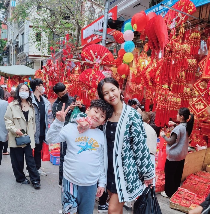 Mới đây, trên trang cá nhân Phương Phạm - bà xã diễn viên Mạnh Trường đăng tải khoảnh khắc cùng hai nhóc tỳ xuống phố đi dạo sắm Tết. Cô viết: "3 mẹ con trốn bố và em Bi đi sắm Tết".