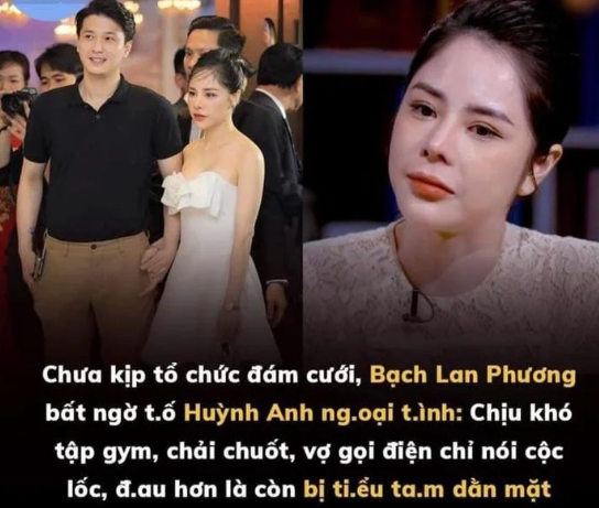 Được biết, Bạch Lan Phương hơn Huỳnh Anh 6 tuổi, làm MC và kinh doanh. Trước đó, cô đã trải qua một cuộc hôn nhân và có con gái riêng. Bạch Lan Phương còn là gương mặt quen thuộc trên sóng truyền hình VTV, từng tham gia dẫn xuất nhiều chương trình truyền hình như VTV Kết Nối, Thời trang và cuộc sống.