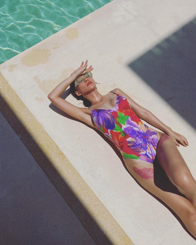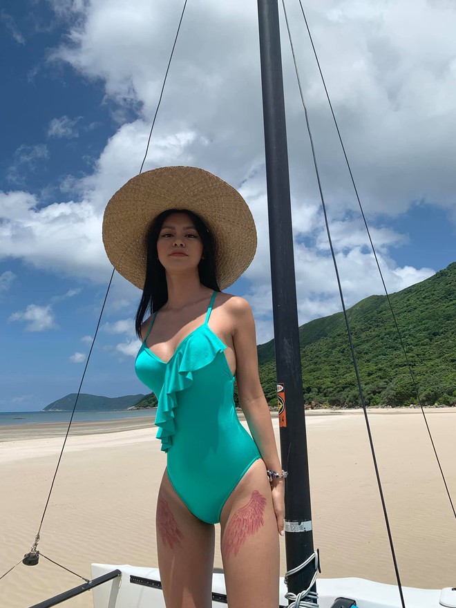 Bùi Lan Hương theo đuổi phong cách gợi cảm. Nữ ca sĩ có hình xăm màu đỏ tăng thêm độ bắt mắt mỗi lần cô khoe dáng với đồ bơi.