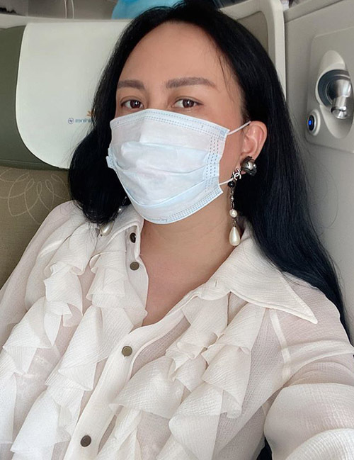 Phượng Chanel về Hà Nội thăm mẹ và con gái mới từ Mỹ về nước tránh dịch. Nữ doanh nhân cho biết cô đeo khẩu trang, kính mát, găng tay cao su và trang bị kín mít khi ra sân bay dể tránh nhiễm COVID-19. Khi ngồi yên vị trong máy bay, Phượng Chanel mới bỏ kính ra cho thoải mái.