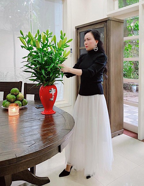 'Trốn dịch mãi, ít ra đường cũng thành thói quen. Hàng ngày tôi chỉ quanh quẩn ăn và nấu ăn, nghe con gái chơi đàn, chăm sóc đàn chó, trò chuyện với bạn bè qua mạng xã hội... Thỉnh thoảng tôi mới ra ngoài hít thở không khí cho thoải mái. Do dịch bệnh nên việc kinh doanh của tôi bị ảnh hưởng nghiêm trọng, doanh thu giảm 70%. Tuy vậy, tôi vẫn cố gắng lạc quan và chi trả lương đầy đủ cho hàng trăm nhân viên của mình', Phượng Chanel chia sẻ cuộc sống của cô trong dịch bệnh.
