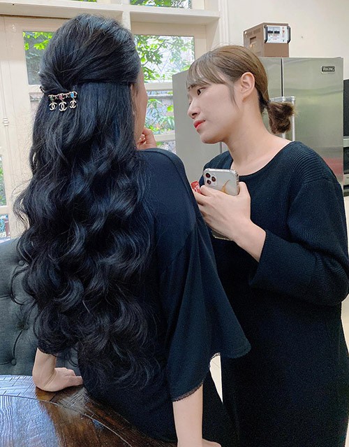 Nữ doanh nhân thuê chuyên gia trang điểm tới nhà giúp làm tóc, chăm chút dung nhan trước khi họp trực tuyến với nhân viên.