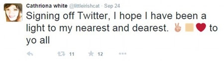 Cathriona White để lại thông điệp đầy tâm trạng trước khi tự tử |