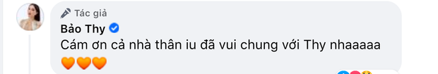 Phía dưới bài đăng của Bảo Thy, dân tình rần rần để lại bình luận thắc mắc về chuyện bầu bí của nữ ca sĩ. Không hề đáp lại bất kỳ câu hỏi nào, Bảo Thy chỉ tiết lộ rất hào hứng, phấn khởi và để lại 1 câu đầy ẩn ý: "Cảm ơn cả nhà thân yêu đã chung vui với Thy nha". Liệu rằng đây có phải động thái xác nhận tin vui của Bảo Thy hay không, câu trả lời phải chờ đến khi chính chủ lên tiếng mới có thể khẳng định được.