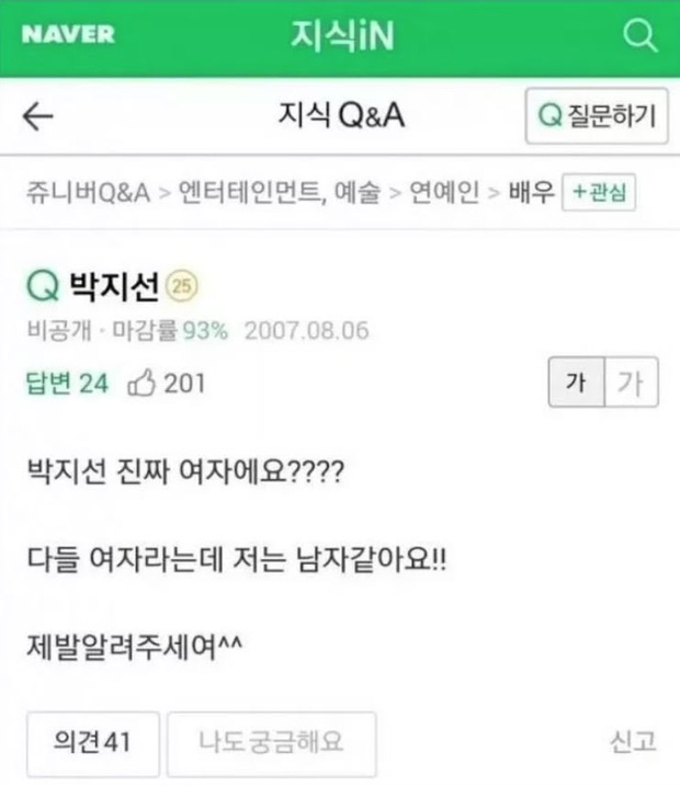 Cư dân mạng cũng đã tìm lại 1 câu chuyện về tình yêu thương của người cha dành cho cô con gái quá cố. Trở lại năm 2007, 1 netizen ẩn danh đã công kích Park Ji Sun bằng những từ ngữ nặng nề: "Park Ji Sun có đúng là phụ nữ không vậy? Tôi thấy cô nàng y chang đàn ông. Ai đó giải thích với".