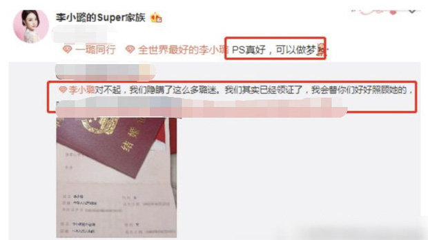 Tuy nhiên, giữa loạt nghi vấn tình ái của Lý Tiểu Lộ, fandom của nữ diễn viên đã chính thức có bài viết phản hồi, khẳng định những hình ảnh trên mạng đã được photoshop tinh vi, đây chỉ là sản phẩm của một fan cuồng quá yêu mến nữ diễn viên họ Lý mà thôi.